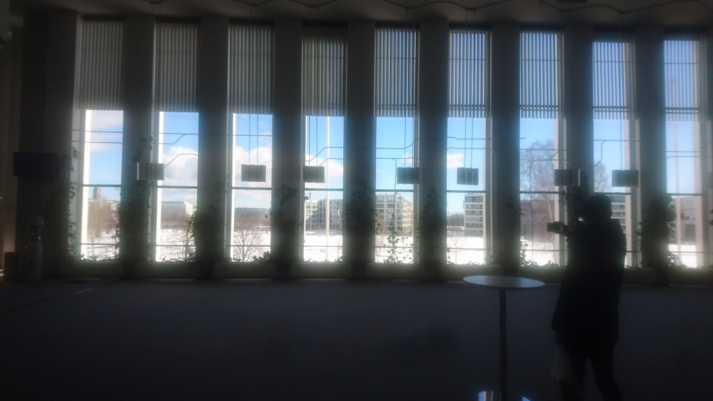 Phil and I flew out to Helsinki on 28 March, where we enjoyed amazing collections in Kiasma modern art gallery, and (my personal highlight) wandered around the Aalto-designed Finlandia Hall. Everything was covered in snow; Töölö Bay was entirely frozen over. On Thursday 29 March we met up with Ed and played solo sets at Third Space – an intimate and modern venue in the centre of the city.