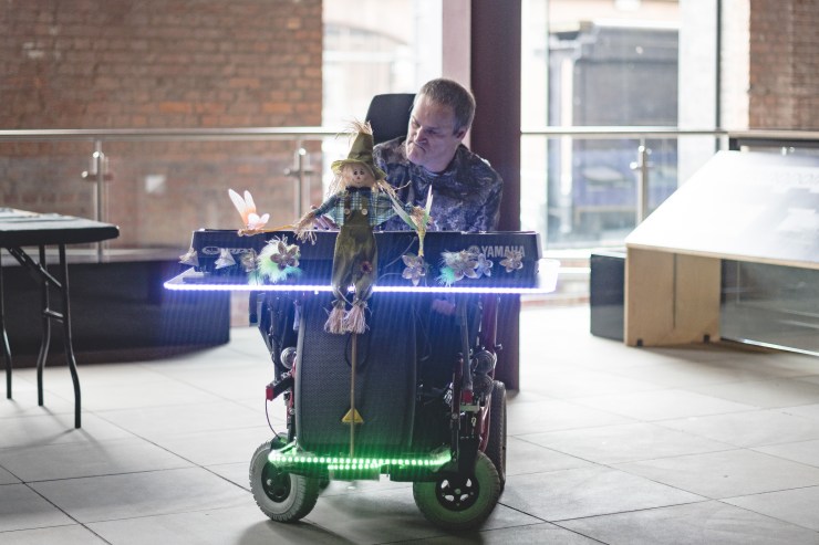 I am increasingly becoming bonded to my growing collection of synthesisers and all of the wonderful soundscapes they can offer me as a creative musician. As a one-handed and often one-fingered musician I am often frustrated by the double button presses that are required to access all of the features on electronic instruments. However, I have devised and designed several low tech adaptive equipment solutions to combat these difficulties by using things like strong magnets and 3D printed components. I rarely play exactly the same thing twice as I want my music and playing to remain fresh and exciting in my own compositions. I am always searching for new sounds, shapes, rhythms and beats. It’s a bit like prospecting for gold as it takes a lot of time and effort, but when you hit the good stuff, it’s party on.