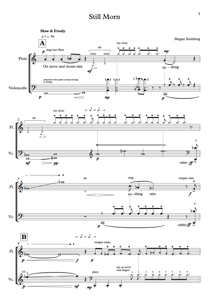 Still Morn flute and cello Preview of score Share this:TweetShare on Tumblr Click to share on WhatsApp (Opens in new window) WhatsApp Click to email a link to a friend (Opens in new window) Email Like Loading...