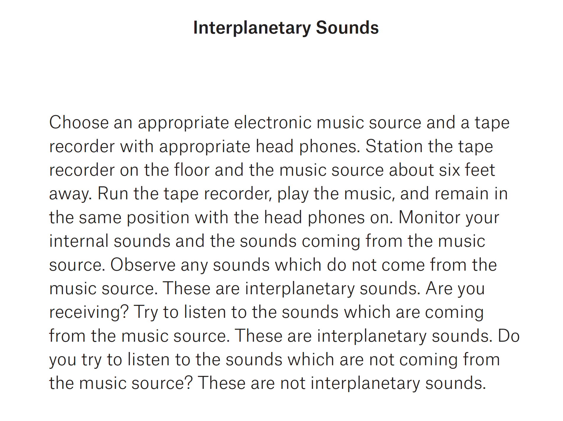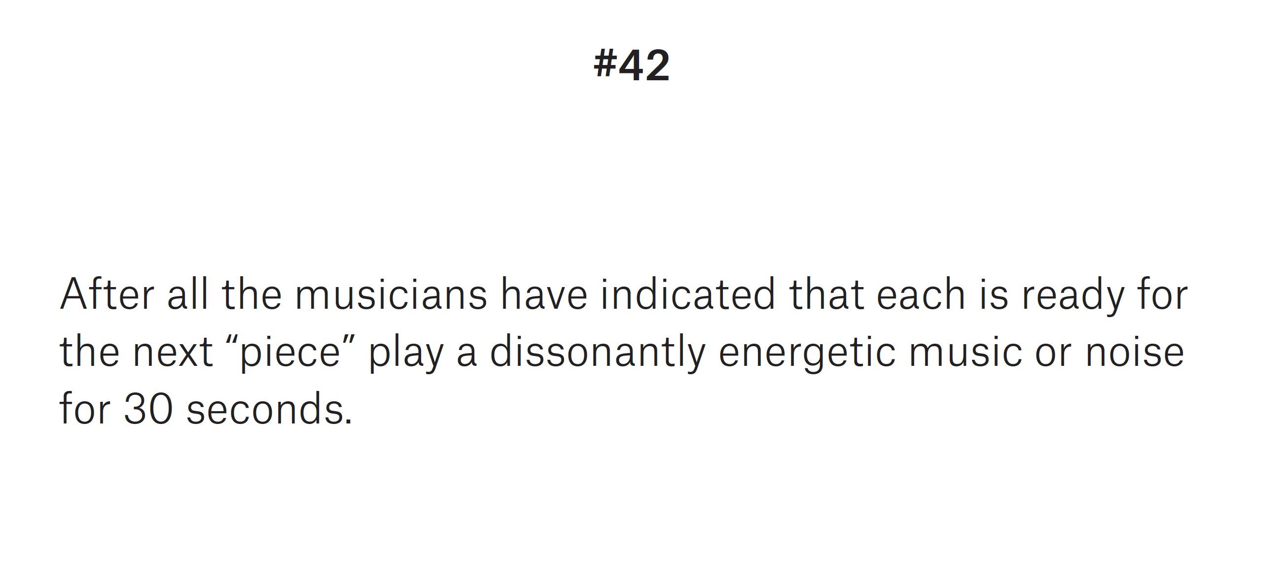 Performing a text score is a process of decomposition: you unpick the structure, form, syntax, lexicon, imagery. You make a decision whether to approach it literally or figuratively. As an ensemble, make decisions about how far to align those individual approaches (if at all). You consider the social, historical, political and spiritual contexts. A text score is a message from the composer you’re trying to detangle through performance. The composition of a text score is an incredibly human thing – so what does it mean when a computer has composed it?