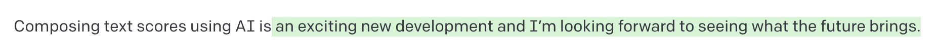 My PhD project, at Royal Northern College of Music, Living Instruments, Universal Composition: New Works and Music Processes for and by Disabled Musicians is exploring the accessibility of experimental music processes for disabled, Deaf and neurodivergent performers. Text scores are accessible in their use of language over music notation or systems, and have a history of encouraging music/sound-making by amateur and community music groups. AI could further the accessibility of these processes.